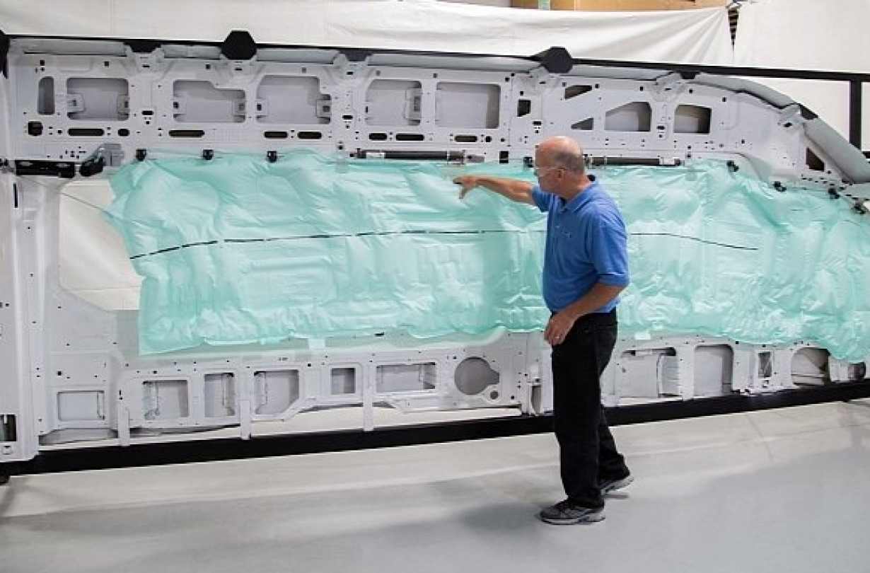 Οι αερόσακοι που θα προστατεύουν τους επιβάτες των 15θέσιων Ford Transit της Β. Αμερικής από πλευρικές συγκρούσεις είναι οι μεγαλύτεροι του είδους τους, σύμφωνα με τη Ford, και λόγω μεγέθους δικαιολογούν πλέον τον τίτλο «αερόσακοι τύπου κουρτίνας».