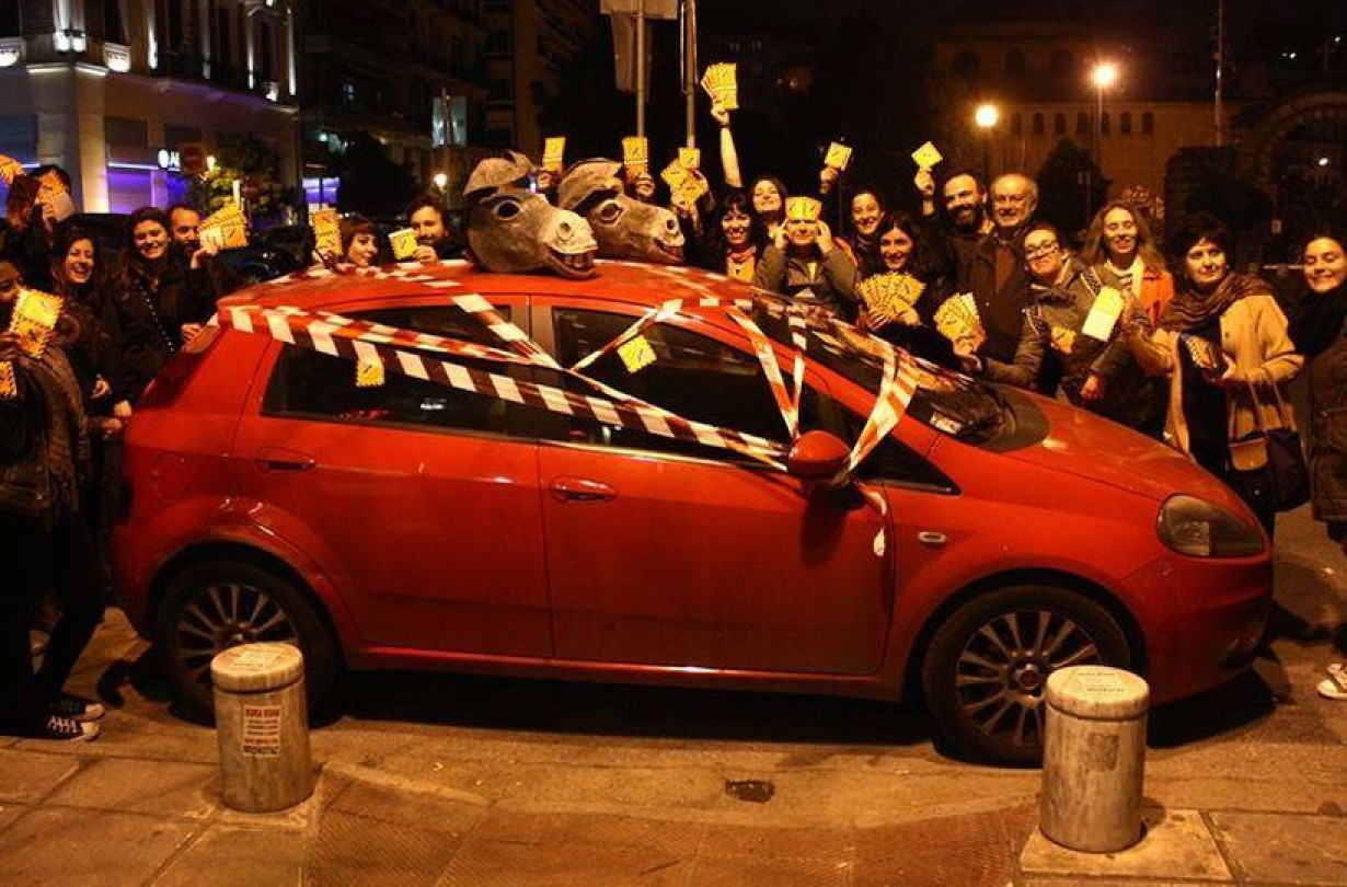 Το περασμένο Σάββατο η ομαδική εξόρμηση των Streetpanthers στους δρόμους της Θεσσαλονίκης προχώρησε ένα βήμα παραπέρα. Τα παράνομα παρκαρισμένα αυτοκίνητα που εμπόδιζαν διαβάσεις πεζών και ράμπες αναπήρων στολίστηκαν επιπλέον με ταινία και μεγάλα κεφάλια γαϊδάρων στην οροφή.