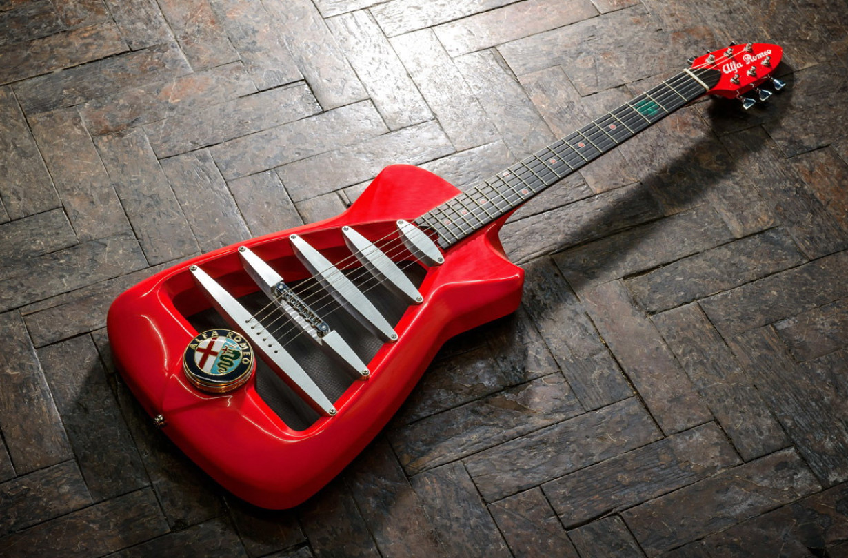 Ο Μιλανέζος κατασκευαστής συνεργάστηκε με την Harrison Custom Guitar Works για να φτιάξουν αυτή την περιορισμένης παραγωγής κιθάρα που βλέπετε στις φωτογραφίες. Η κιθάρα σχεδιάστηκε με βάση το εμβληματικό σήμα της μάσκας των Alfa Romεo και για την κατασκευή της χρησιμοποιήθηκαν υλικά της αυτοκινητοβιομηχανίας, όπως αλουμίνιο και ανθρακόνημα, αλλά και παραδοσιακά ξύλα που χρησιμοποιούνται για τη κατασκευή κιθαρών, όπως λεύκα, σφενδάμι, έβενος και κορίνα. Τα δε μεταλλικά μέρη της είναι κομμένα με CNC από μασίφ κομμάτι αλουμινίου και όχι χυτευμένα. Συνολικά θα κατασκευαστούν μόνο έντεκα τέτοιες κιθάρες που θα πουληθούν στην τιμή των £4.000 ή €5.000.