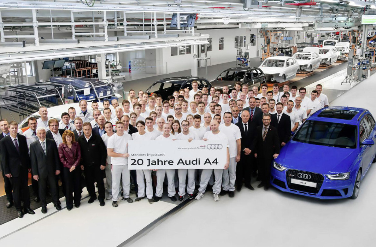 Πέρα όμως από τον εορτασμό των 20 χρόνων του A4, η Audi ανακοίνωσε ότι προχωρά σε προετοιμασία του εργοστασίου στο Ingolstadt για την παραγωγή της νέας γενιάς του μοντέλου το 2015. Η Audi δεν προχώρησε σε λεπτομέρειες, αλλά σίγουρα βρίσκεται σε εκμοντερνισμό του κατασκευαστικού εξοπλισμού για να υποδεχθεί τη νέα γενιά A4, όπως τα νέα ρομπότ (1.300) του τμήματος αμαξωμάτων στο βόρειο τμήμα του εργοστασίου.