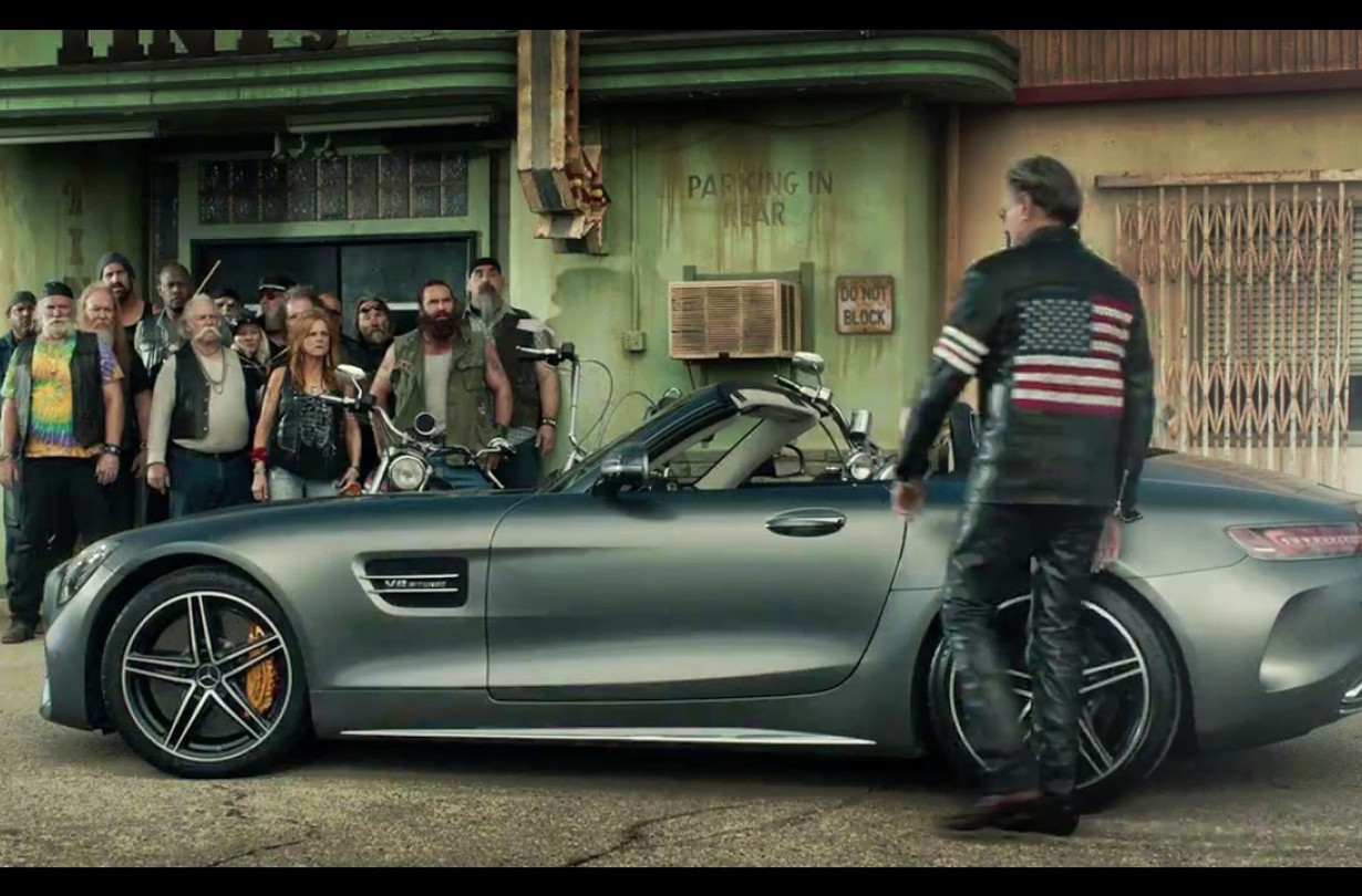 Ορμούν αμέσως έξω με άγριες διαθέσεις και βλέπουν πως ο προκλητικός αυτοκινητιστής είναι ο ίδιος ο Peter Fonda, 48 χρόνια μετά. Ο σταρ μπαίνει στη Mercedes-AMG GT C του κι εξαφανίζεται προς το ηλιοβασίλεμα.