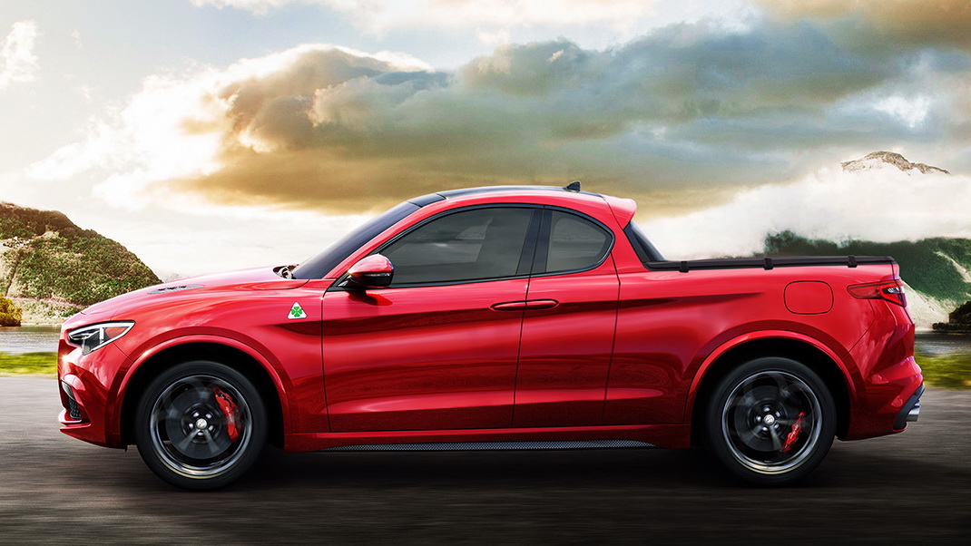 Εμείς από τη μεριά μας ψηφίζουμε αγροτικό Stelvio κι ας είναι ακόμη πιο «σαύρα». Όχι αυτή την αηδία της Theophilus Chin που είναι FIAT Toro με μούρη Stelvio, αλλά το κομψό της X-Tomi Design, και μάλιστα σε έκδοση Quadrifoglio, που βλέπετε στη φωτό κάτω. Θα μας έρθει πιο οικονομικά και μας αρέσει το set-up king-cab με την πίσω πόρτες suicide και χωνευτές στις εμπρός, αντί της κλασικής διάταξης double-cub της Urus.