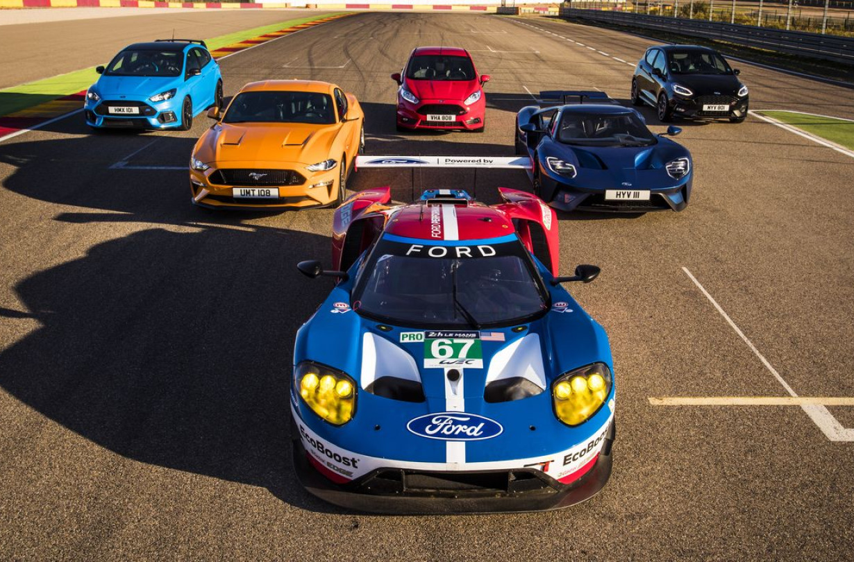 Στο νέο βίντεο της Ford Performance που γυρίστηκε στην πίστα Motorland της Βαρκελώνης, τα Ford F-150 Raptor, το ολοκαίνουργο Fiesta ST, το Focus RS, η νέα Mustang GT, η Mustang GT350R, το Ford GT παραγωγής και το αγωνιστικό Ford GT σε μία μεταξύ τους χρονομέτρηση σε ένα και μόνο γύρο στο σιρκουί των 5,345 μέτρων.