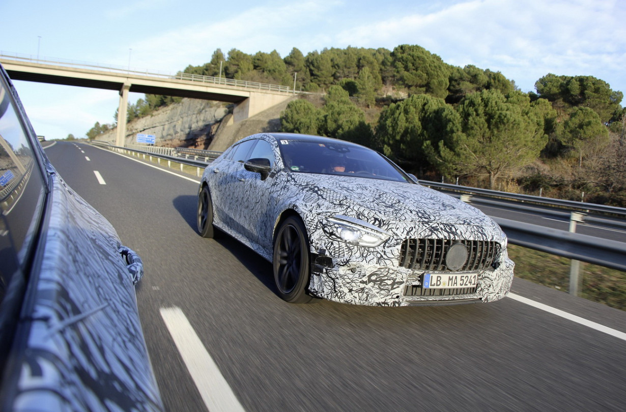 Η εταιρεία κρατά τις πληροφορίες ακόμη μυστικές, αλλά αποκάλυψε τρεις εικόνες του καμουφλαρισμένου πρωτοτύπου στην τελευταία φάση των δοκιμών εξέλιξης. Οι άλλες εικόνες είναι επεξεργασμένες (renderings) αλλά αρκετά κοντά σύμφωνα με πηγές πο γνωρίζουν το θέμα στο τελικό σχέδιο. Ακριβώς ένα χρόνο το Mercedes-AMG GT concept είχε προλογίσει το αυτοκίνητο που κατά πάσα πιθανότητα θα διατηρήσει το όνομα GT4 με το οποίο έχει συνδεθεί. Ενσωματώνει τη γρίλια Panamericana της Mercedes-AMG GT R, με τα φώτα να ανεβαίνουν προς το μακρύ καπό. Το πίσω μέρος είναι μια επιμηκυμένη εκδοχή του δίθυρου αμαξώματος. Η ουρά είναι τυπική κουπέ AMG GT, με τα λεπτά φώτα και τέσσερις εξατμίσεις.