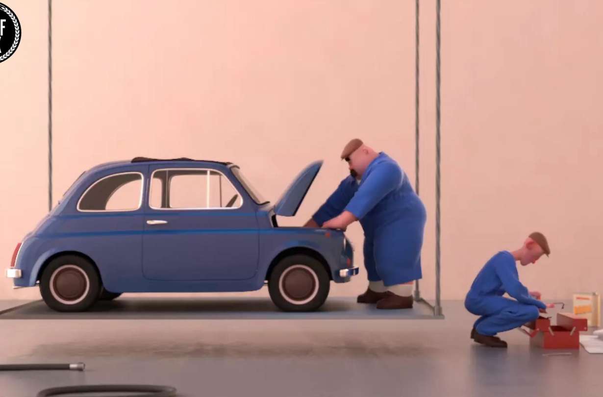 Η ξεκαρδιστική συνέχεια, που εξελίσσεται χωρίς διαλόγους ή μουσική, σε ένα φιλμάκι που διαρκεί λιγότερο από δύο λεπτά, παίρνει τη μορφή ακροβατών τσίρκου, με ήρωες τους δύο μηχανικούς και το FIAT. H κατάληξη είναι το 500ράκι να χρειάζεται πολλαπλάσιες επισκευές απ’ ό,τι όταν ήρθε στο ατελιέ.