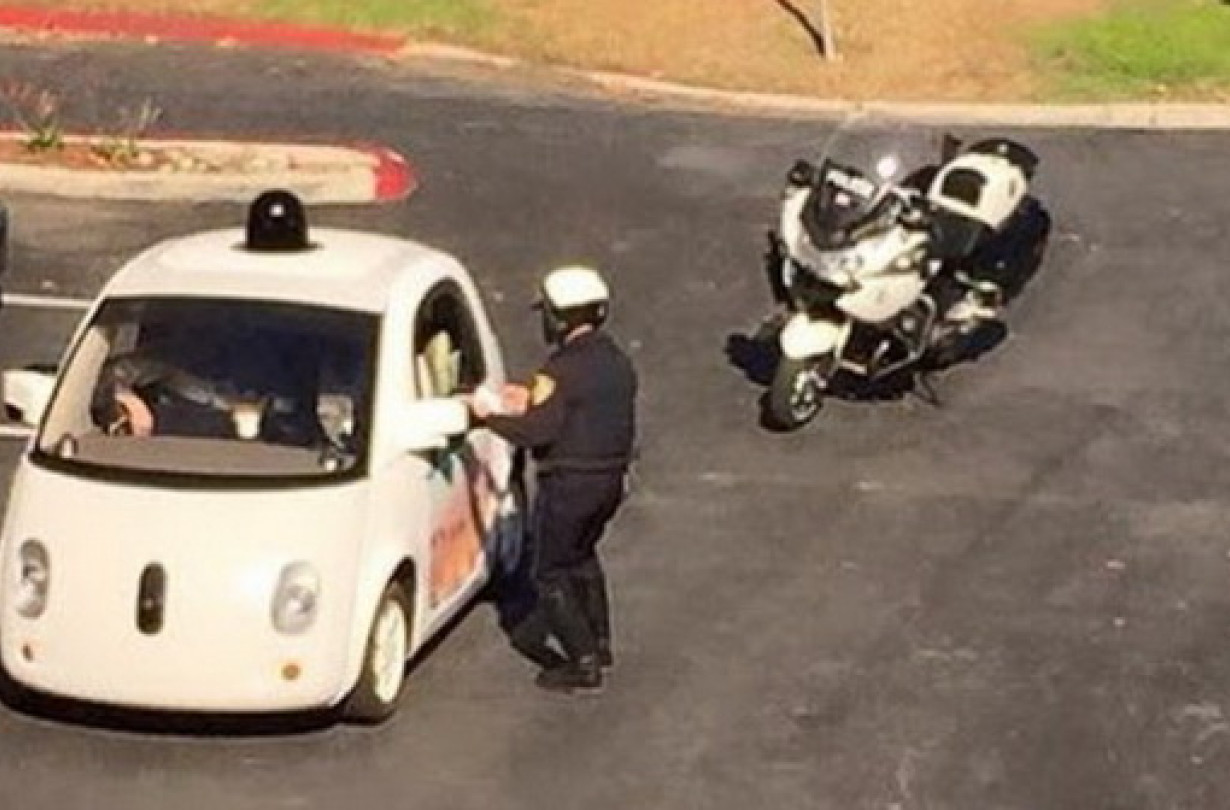 Η αστονομία της Καλιφόρνια σταμάτησε το αυτόνομο αυτοκίνητο της Google επειδή κινείτο με 39 km/h σε δρόμο με όριο ταχύτητας 56 km/h. Σύμφωνα με το blog του αστυνομικού τμήματος της περιοχής, το περιστατικό έγινε όταν περιπολικό βρέθηκε σε ένα ασυνήθιστο για τα δεδομένα του δρόμου μποτιλιάρισμα.