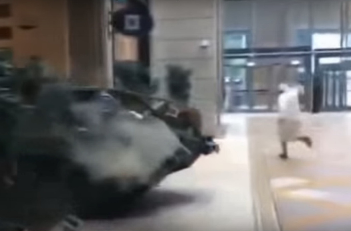 Η σκηνή τον δείχνει να διαλύει ένα τοίχο του πολυτελούς εμπορικού κέντρου, πριν βγει στη λεωφόρο του Σεΐχη Mohammad Bin Rashid από την κύρια είσοδο.