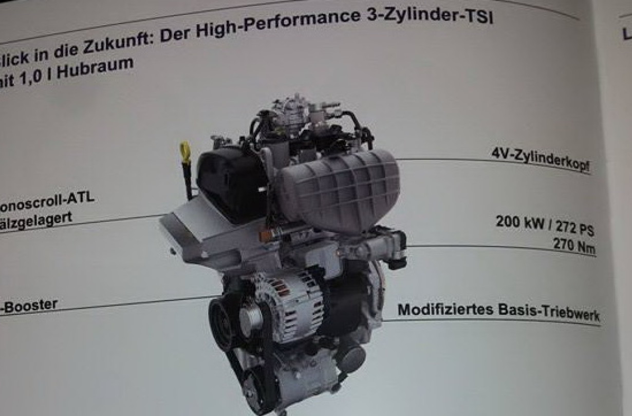 Το νέο μοτέρ, που βασίζεται στο 3κύλινδρο 1.000άρι που φορούν τα νέα Polo και Audi A1, αποδίδει μέγιστη ισχύ 272 PS και μέγιστη ροπή 27,5 kgm. Με τη χρήση των «γονιδίων του αγωνιστικού κινητήρα από το Polo WRC», η νέα αυτή κινητήρια μονάδα χρησιμοποιεί monoscroll τούρμπο και ένα ηλεκτρικό σύστημα υπερτροφοδότησης e-booster.