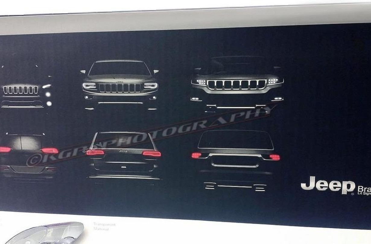 Μια διαφάνεια που δείχνει τα φώτα των μοντέλων της μελλοντικής γκάμας των Jeep, περιλαμβανομένου του νέου Grand Wagoneer, αποκαλύπτει πόσο ψηλότερο και πιο φαρδύ είναι σε σχέση με το σημερινό Grand Cherokee. Το Compass που θα ντεμπουτάρει επίσημα στη Β. Αμερική στο LA Auto Show 2016, το επόμενο μήνα, παραδόξως δεν εμφανίζεται στη διαφάνεια.