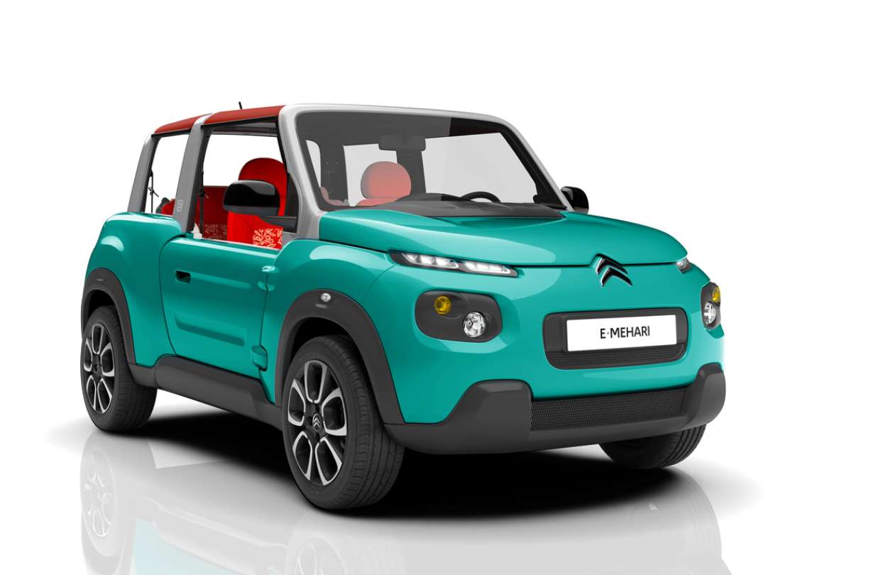 Η σχεδίαση του E-Mehari είναι ιδιαίτερα απλή και το αμάξωμά του πλαστικό, όπως το παλιό μοντέλο που ήταν ένα δημοφιλές “beach buggy” πολλαπλών χρήσεων που χρησιμοποιούσαν οι αγρότες και μερικά τμήματα του γαλλικού στρατού.