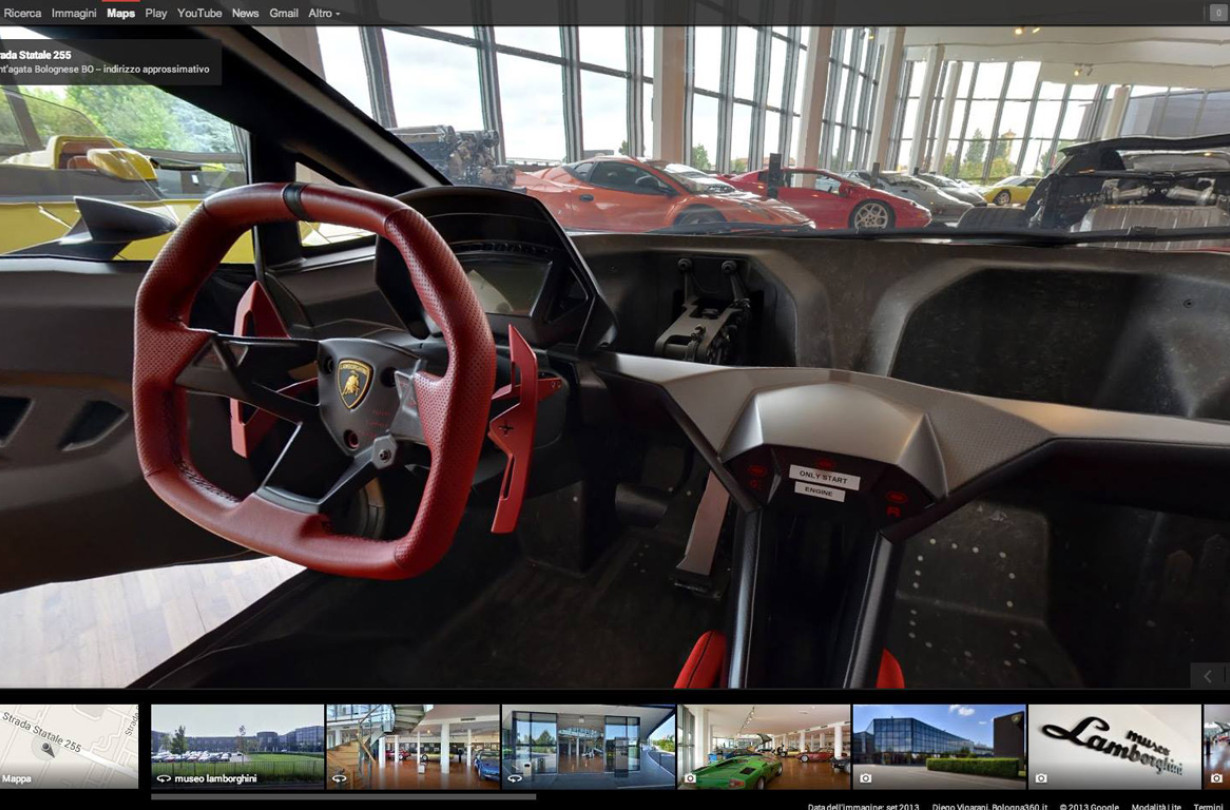 Μια ευχάριστη έκπληξη μας ετοίμασε η Lamborghini σε συνεργασία με την Google maps. Πλέον, όλοι μπορούν να επισκεφτούν το μουσείο του ιταλού κατασκευαστή supercars χάρη στην βοήθεια της τεχνολογίας του Google Street View. Καθίστε λοιπόν στον άνετο καναπέ του σπιτιού σας και «περπατήστε» δίπλα από την εκπληκτική Miura, την εντυπωσιακή Countach, την ξεχωριστή Reventon και την σπάνια Sesto Elemento.