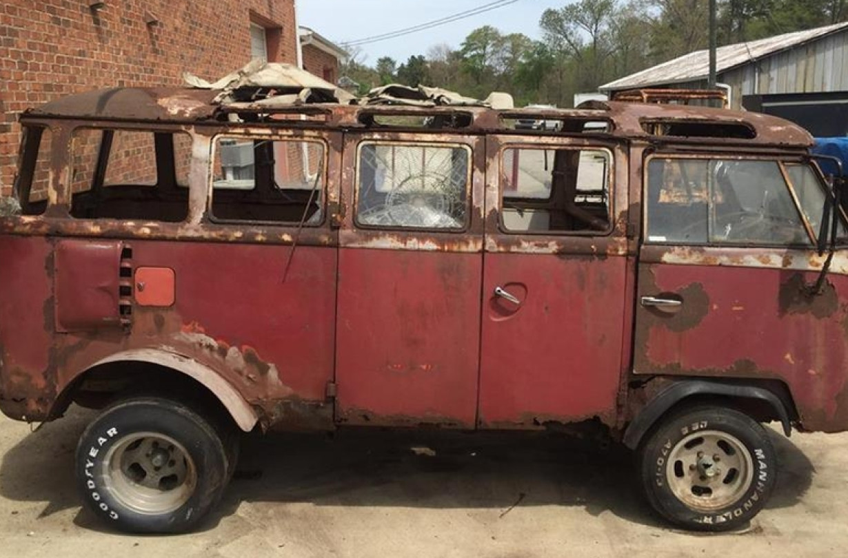 Το συγκεκριμένο Volkswagen Transporter Type 2 είναι μοντέλο του 1962, και σύμφωνα με τον πωλητή του είναι ακινητοποιημένο από το 1974. Μάλλον σε κάποιο χωράφι, χωρίς καμία προστασία από τα στοιχεία της φύσης, υποθέτουμε. Η σκουριά έχει προχωρήσει αρκετά σε κάθε επιφάνεια του αμαξώματος και της καμπίνας του. Το πάτωμα έχει εξαφανιστεί εντελώς σε κάποια σημεία, και τα άλλα δείχνουν έτοιμα να πέσουν αν καθίσει πάνω τους κάτι βαρύτερο από μύγα. Επιπλέον, το συγκεκριμένο έχει πρόχειρες επεκτάσεις στα φτερά, για να καλυφθούν τα φαρδιά ζαντολάστιχα που μοιάζουν να έχουν κλαπεί από κάποια Chevrolet Camaro.