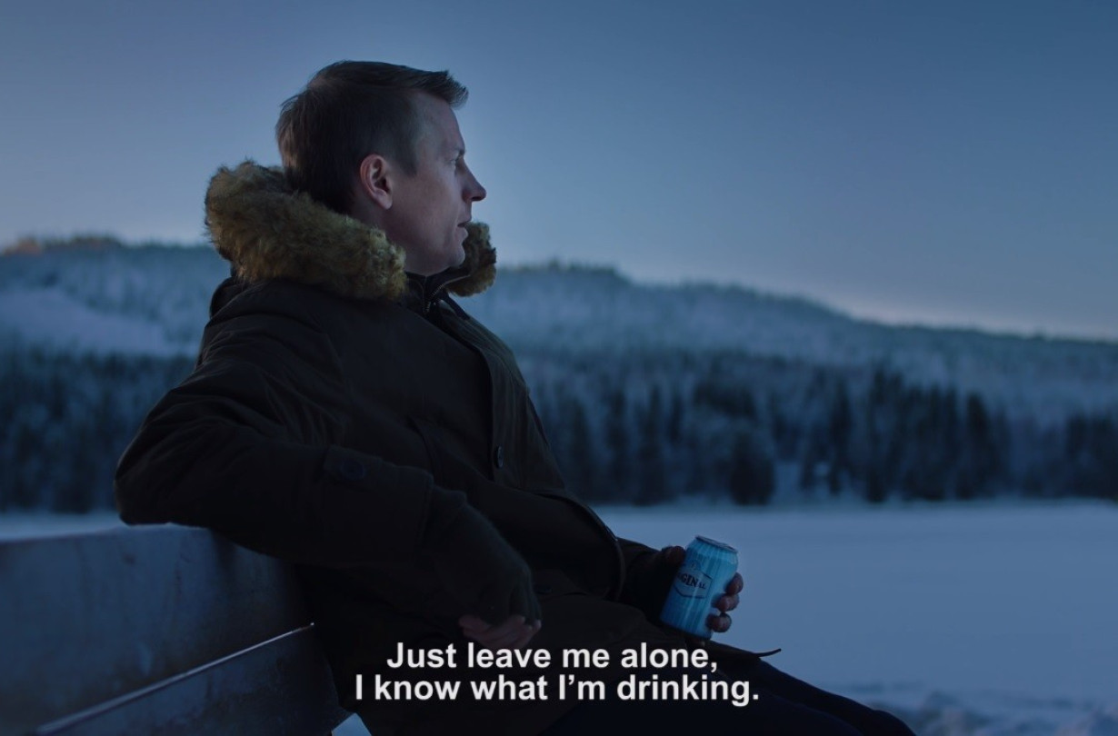 Στο πρώτο από αυτά, ο “Iceman” πίνει το τζιν κοκτέιλ του στην άκρη μιας παγωμένης λίμνης κι εκνευρίζεται με τον αφηγητή του διαφημιστικού, λέγοντάς του «Άσε με ήσυχο, ξέρω τι πίνω!».