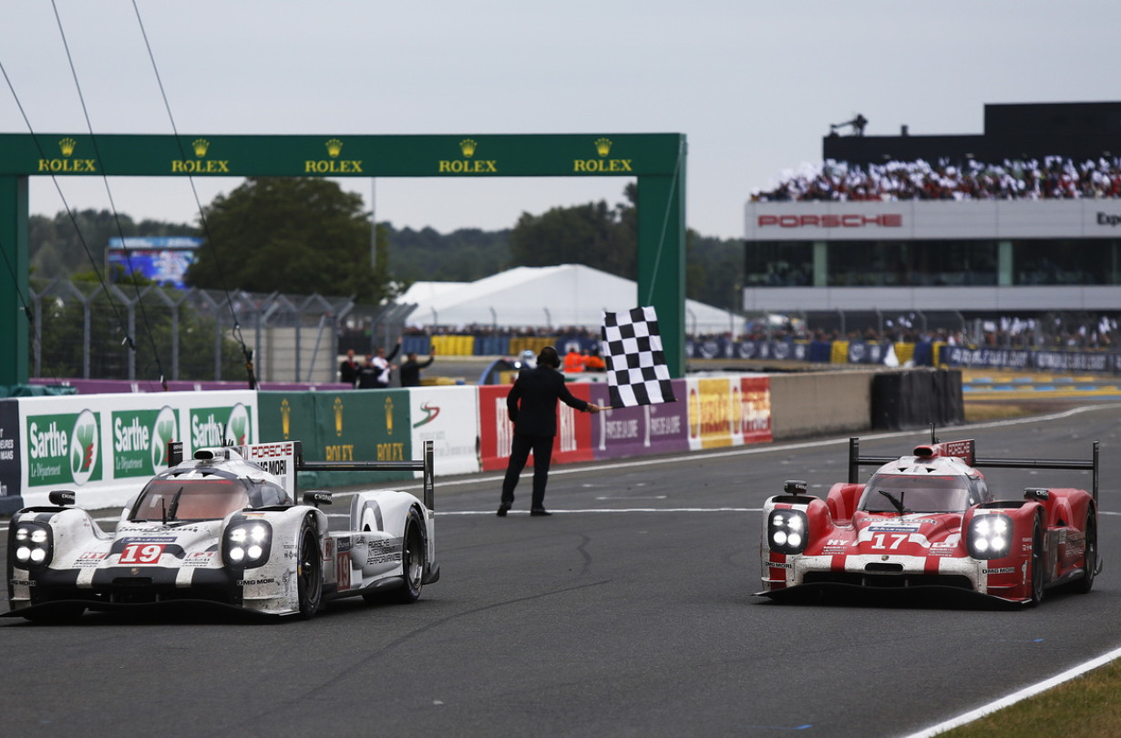 Το μόνο που έμενε στην Porsche να κάνει μετά από αυτό, ήταν να φέρει προσεκτικά – λόγω της ελαφριάς βροχής το τελευταίο 10λεπτο– το No.19 και το Νο.17 αυτοκίνητά της στη γραμμή του τερματισμού, που την πέρασαν σε σχηματισμό.