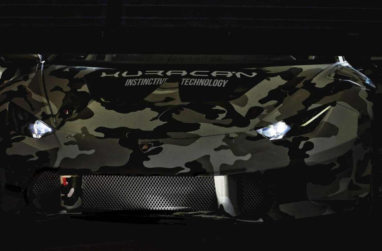 Στη μοναδική φωτογραφία που δημοσίευσε βλέπουμε τη βαφή που παραπέμπει σε στρατιωτικό καμουφλάζ, μια σαφώς μεγαλύτερη εισαγωγή αέρα στον εμπρός προφυλακτήρα και πιθανότατα ένα διπλό άνοιγμα στο καπό. Εικάζουμε ότι στο πίσω μέρος, με την απαραίτητη αεροτομή και το τεράστιο diffuser, η Huracán του Super Trofeo θα διαφέρει ακόμα περισσότερο από το μοντέλο παραγωγής.