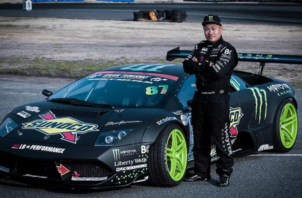 Με τη βοήθεια της Monster Energy και της Liberty Walk, ο Saito έφτιαξε μέσα σε επτά μήνες μια φουσκωμένη, πισωκίνητη Murcielago για να συμμετάσχει στο ιαπωνικό πρωτάθλημα D1GP. Το ιταλικό supercar γδύθηκε εντελώς για να περαστεί το roll cage και να τοποθετηθούν όλα τα μοναδικά μηχανικά μέρη που χρειάζονται για τη μετατροπή του σε πισωκίνητο. Ο ατμοσφαιρικός V12 των 6,5 λίτρων έχει υποστεί περιφερειακές βελτιώσεις ώστε να αποδίδει 650 PS.