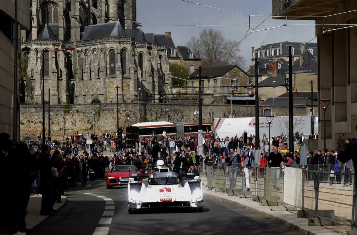 Η γερμανική ομάδα αποκάλυψε χθες το πρωτότυπο, στα νέα αγωνιστικά του χρώματα, σε μια εκδήλωση στους δρόμους της πόλης του Le Mans. Ο πολυνίκης των 24 Ωρών, Tom Kristensen, το οδήγησε από τον καθεδρικό ναό Saint Julien της πόλης μέχρι την πίστα, όπου έκανε κι ένα γύρο της μικρής της εκδοχής “Circuit Bugatti”.
