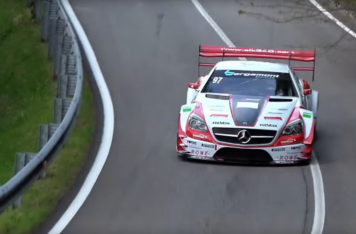 Ο V8 αυτής της αγωνιστικής Mercedes SLK για αναβάσεις είναι εύκολα μέσα στο top 3 των καλύτερων σε ήχο κινητήρων που έχουν ακούσει τα αυτιά μας.