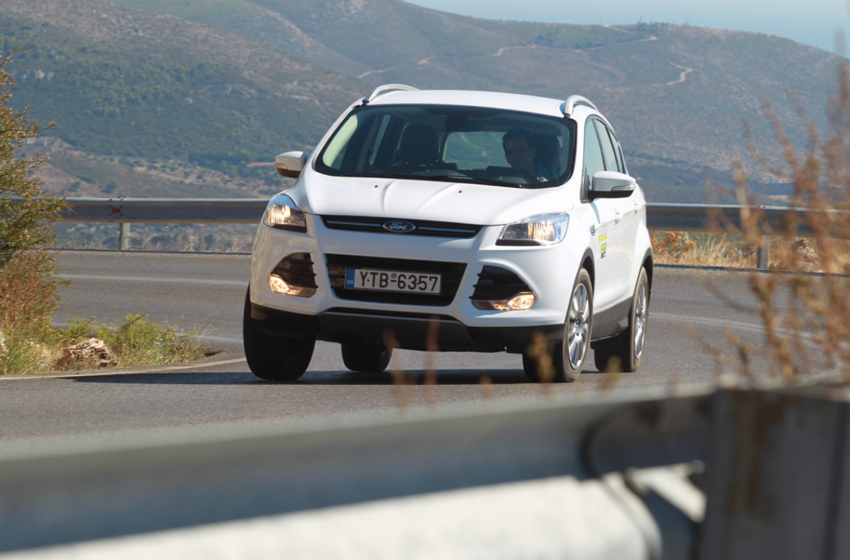Βέβαια όλα τα παραπάνω είναι απλώς στο πίσω μέρος του μυαλού σου, αν βρεθείς με όρεξη στο κατάλληλο στροφιλίκι. Το κύριο πλεονέκτημα του Kuga δεν είναι ούτε τα ηλεκτρονικά ούτε η μόνιμη τετρακίνηση. Αυτό που το κάνει να ξεχωρίζει είναι ο σπορ χαρακτήρας, δηλαδή το σύνολο των ρυθμίσεων της ανάρτησης, του μεγέθους υποβοήθησης του τιμονιού, των στροφών της κρεμαγέρας και της ακαμψίας του πλαισίου. Δίνει την αίσθηση πως μπορεί να κρατήσει μεγαλύτερη φόρα μέχρι την κορυφή της στροφής από τα υπόλοιπα SUV της κατηγορίας, ενώ αν ξεπεράσεις το όριο της πρόσφυσης, το ESP δεν σε κόβει ενοχλητικά και απότομα.