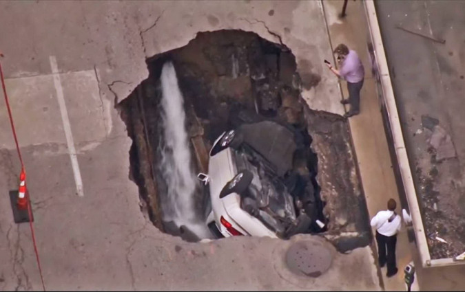 Το Toyota Camry του πρώτου video εξαφανίστηκε μέσα σε έναν κρατήρα που άνοιξε ξαφνικά σε κεντρικό…