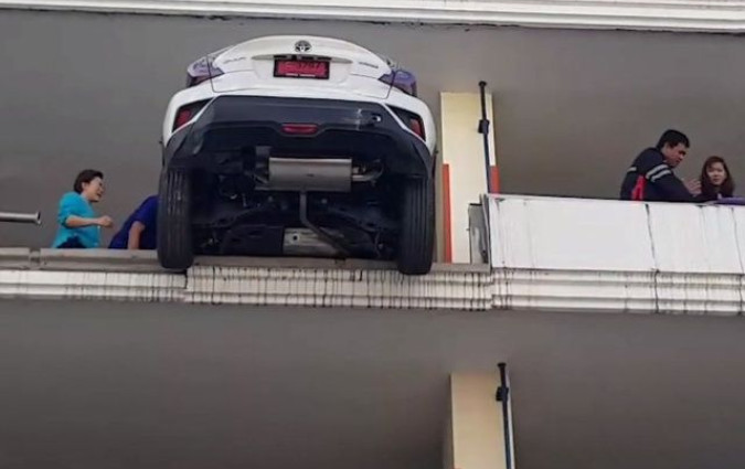 Μια γυναίκα οδηγός στην Ταϊλάνδη παραλίγο να βρεθεί με το αυτοκίνητο της  στο κενό από ύψος 15…