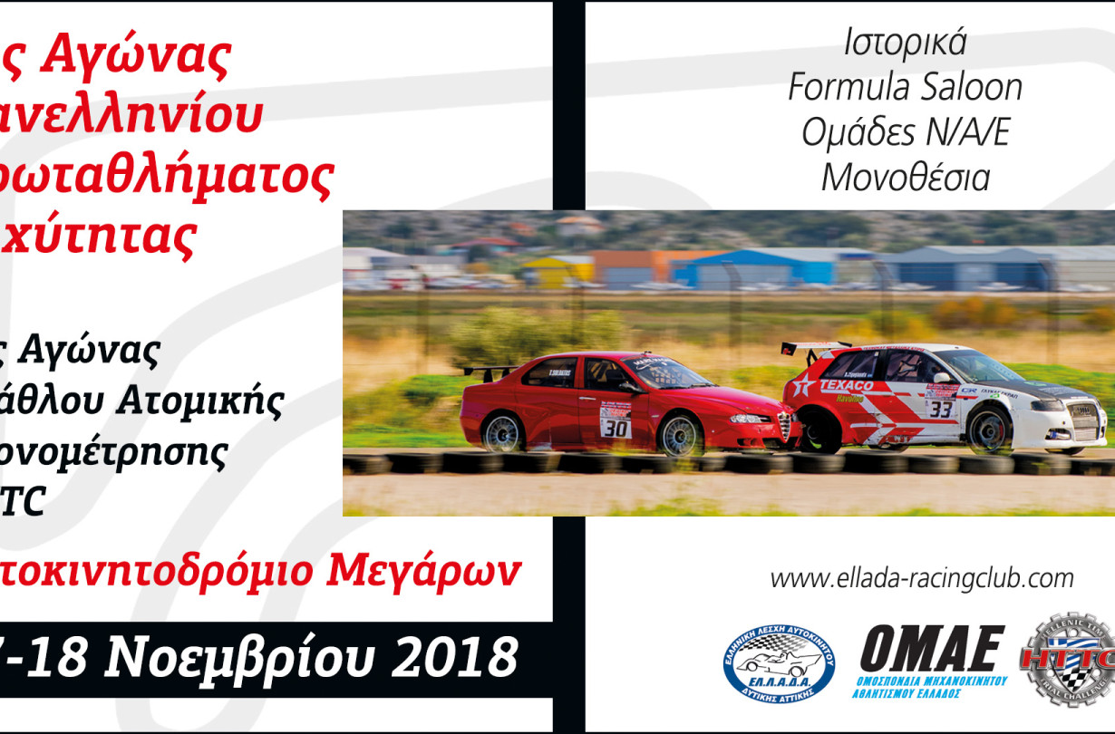 Το Πανελλήνιο Πρωτάθλημα Ταχύτητας 2018 συνεχίζεται με έναν αγώνα στο Αυτοκινητοδρόμιο Μεγάρων στις 17-18 Νοεμβρίου. Και οι συμμετοχές έχουν ήδη ανοίξει!
