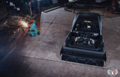 Στο προφίλ βρίσκουμε επιπλέον εσοχές που μοιάζουν με βράγχια, ελαστικά τύπου slick της Michelin και την απόληξη της εξάτμισης να καταλήγει εκεί που θα έπρεπε να ήταν το μαρσπιέ. Στο πίσω μέρος η εικόνα είναι αντίστοιχα εντυπωσιακή, με την τεράστια φτερούγα και τον ανάλογου μεγέθους διαχύτη να κλέβουν την παράσταση.
