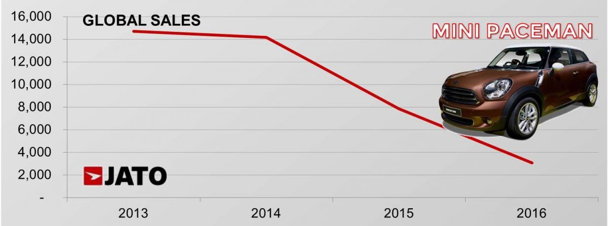 Και η ΜΙΝΙ την πάτησε κατά τα πρόσφατα χρόνια. Υπέθεσε ότι το Paceman θα μπορούσε να γίνει το «cool SUV» της φίρμας με τρεις πόρτες, βασισμένο στο Countryman. Αλλά το πείραμα δεν πήγε καλά, με ιδιαίτερα απογοητευτικές πωλήσεις που εξανάγκασαν την εταιρεία να διαγράψει το όνομά του από τους καταλόγους, όταν λανσαρίστηκε η δεύτερη γενιά Countryman το 2016.