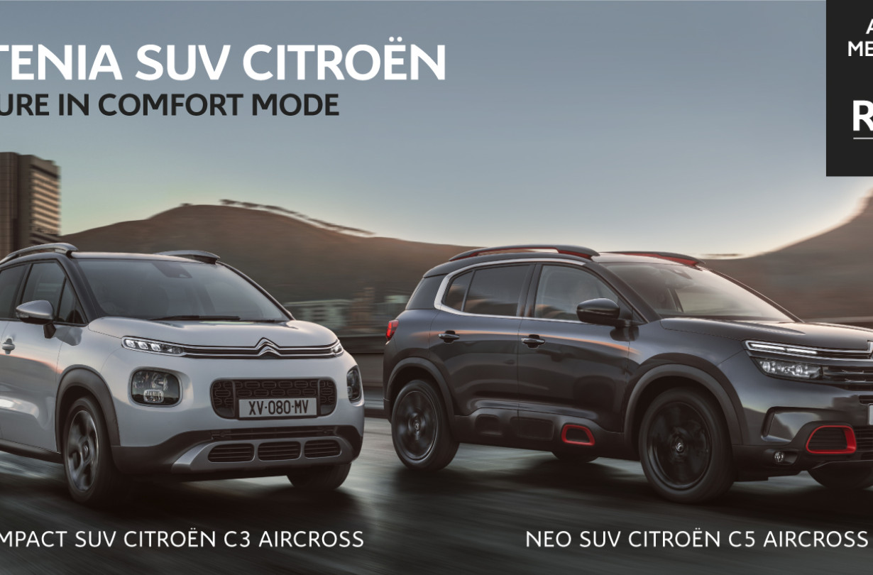 Με τη νέα γενιά SUV της Citroen ανακαλύπτετε την ομορφιά της περιπέτειας σε κάθε σας διαδρομή. Μπορείτε να διαπιστώσετε ό,τι όταν η απόλαυση εστιάζει στην οδήγηση, επιθυμείτε όλο και περισσότερες αφορμές για να χαρείτε όλα τα πλεονεκτήματα του Compact SUV C3 Aircross και του Νέου SUV C5 Aircross της Citroen. Δυο μοντέλα που σχεδιάστηκαν για να προσφέρουν μοναδική εμπειρία στον οδηγό και την απόλυτη άνεση Advance Comfort που μόνο η Citroen μπορεί να προσφέρει.