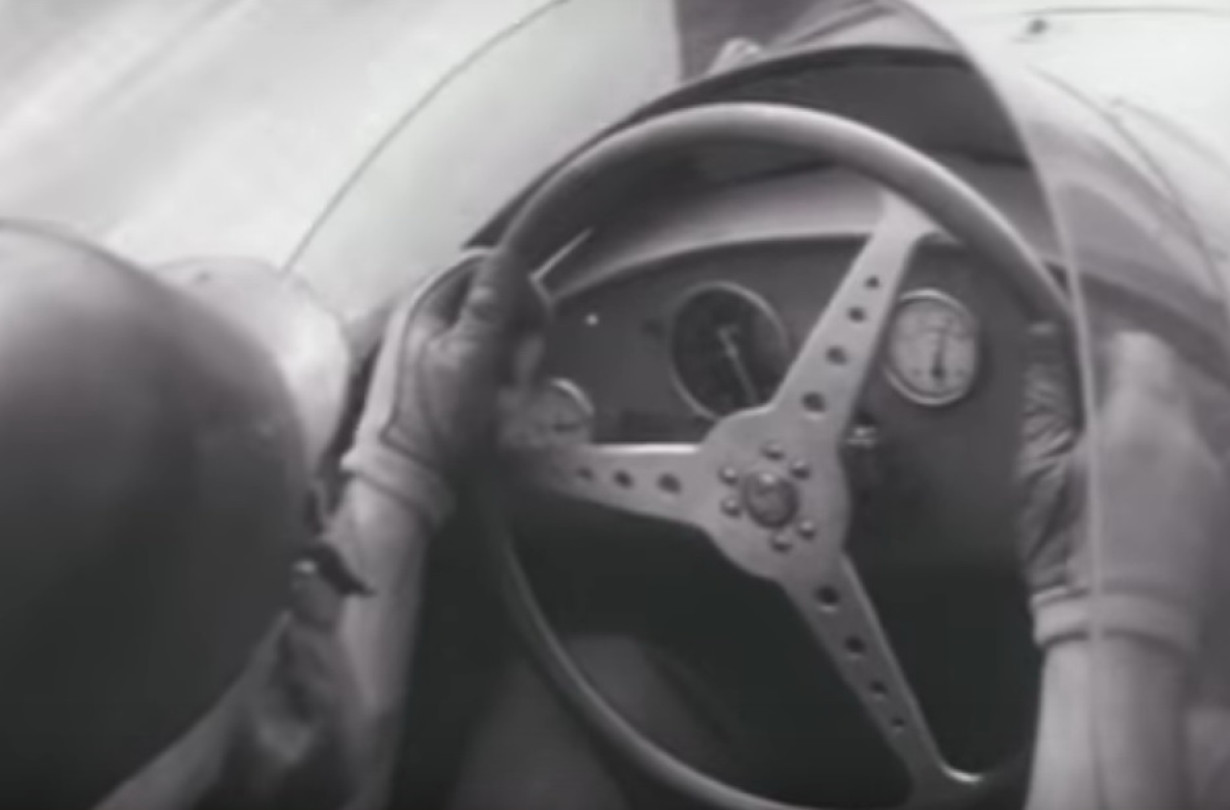 Αυτό εδώ είναι από το 1957 και δείχνει τον μεγάλο Juan Manuel Fangio να δοκιμάζει τη Maserati 250F στο Autodromo της Modena. Θα δείτε τον Αργεντινό να βγαίνει από την ανοιχτή Mercedes 300SL του, να μπαίνει κατευθείαν στο κόκπιτ της Maserati, με το κοντομάνικο και το παντελόνι με την πιέτα, και να ξεκινά αμέσως. Ούτε ζώνες ούτε τίποτα εκείνη την εποχή. Απλά ένα κράνος «καθηκάκι» και γυαλιά μοτοσικλέτας.
