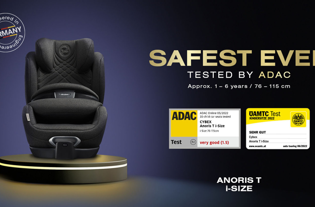 Το παιδικό κάθισμα αυτοκινήτου με φόρα προς τα εμπρός Anoris T i-Size της CYBEX βραβεύτηκε ως το ασφαλέστερο παιδικό κάθισμα αυτοκινήτου που έχει περάσει ποτέ από δοκιμές στην κατηγορία του, σύμφωνα με τους Γερμανικούς οργανισμούς Stiftung Warentest και ADAC.