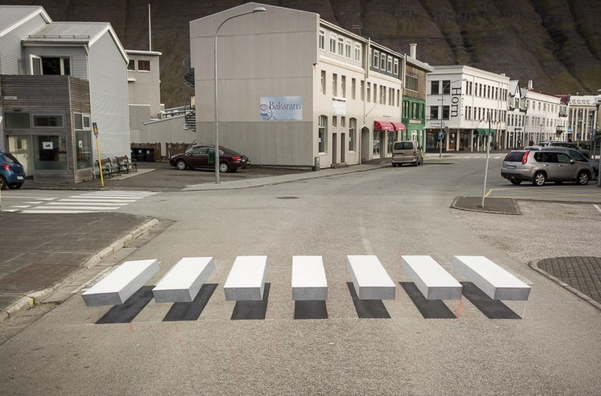 Έτσι, για να επιβραδύνουν οι οδηγοί, μια ισλανδική πόλη μόλις εγκατέστησε τρισδιάστατες διαβάσεις πεζών. Οι διαβάσεις των πεζών εδώ δοκιμάζουν την τεχνική της οφθαλμαπάτης, γεγονός που την καθιστά όμως ανακούφιση. Μια οπτική ψευδαίσθηση που επικροτεί η πόλη του Ísafjörðu.