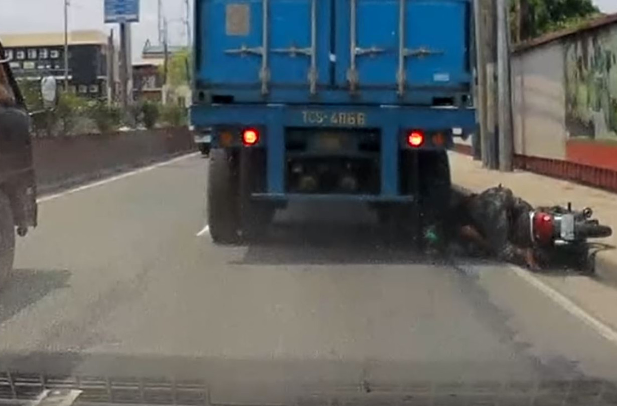 Τα πλάνα είναι σοκαριστικά. Το μηχανάκι με τον αναβάτη που φοράει πράσινο κράνος στην πόλης Κάιντα επιχειρεί να περάσει από τα δεξιά ένα φορτηγό. Την ώρα της προσπέρασης, όμως, ο αναβάτης χτυπάει στο πεζοδρόμιο με αποτέλεσμα να χάσει την ισορροπία του και να πέσει στο οδόστρωμα με το κεφάλι του να βρίσκεται κάτω από το μεγάλο όχημα. Ένα δευτερόλεπτο αργότερα το φορτηγό κινείται και μια από τις ρόδες του πατάει στο κεφάλι τον μοτοσικλετιστή.