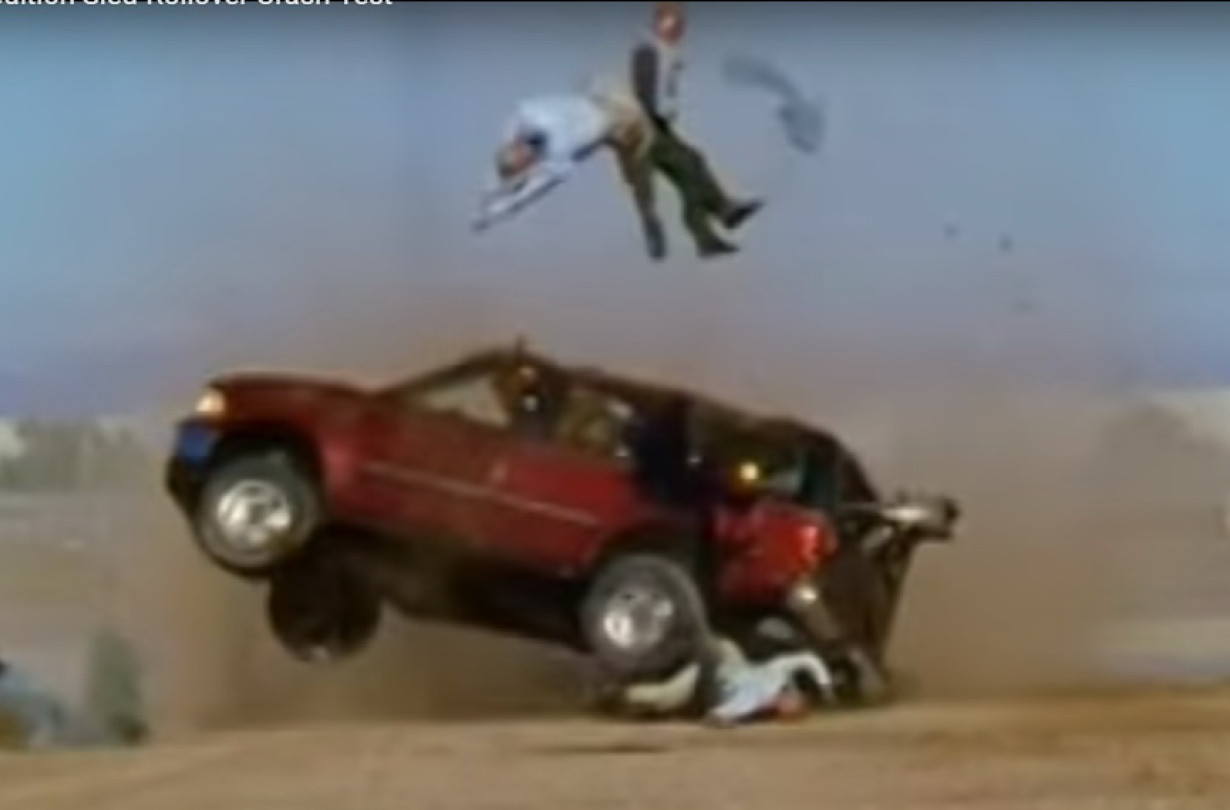 Αυτός ήταν και ο στόχος του crash test, όπου μια κινούμενη πλατφόρμα που μετέφερε ένα μεγάλο SUV Ford Expedition σταμάτησε απότομα αφήνοντάς το να πάρει μια σειρά από τούμπες με αρκετά μεγάλη ταχύτητα. Επρόκειτο για προσομοίωση ενός ατυχήματος που είναι πολύ πιθανό να συμβεί αν χαθεί ο έλεγχος του αυτοκινήτου και αυτό, πλαγιολισθαίνοντας, βρει σε μαλακό έδαφος ή σε κάποιο εμπόδιο που θα κάνει μοχλό και θα το τουμπάρει.