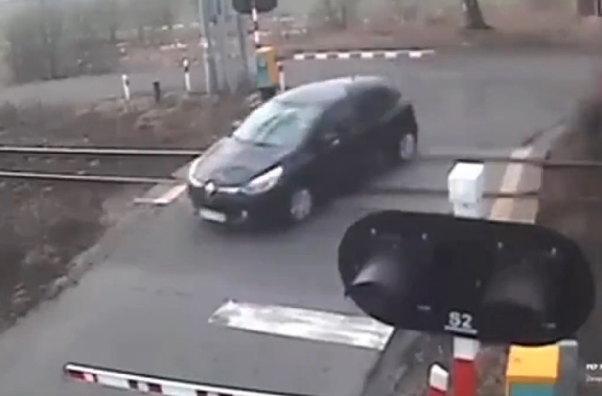 Ο Πολωνός οδηγός του Renault αγνόησε τους αναλάμποντες κόκκινους φανούς, τα κινητά φράγματα που είχαν κατέβει και το έκανε μάλιστα με το ιδανικό timing για να «πιάσει» το τρένο. Και τα κατάφερε!