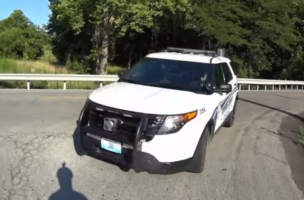Ο ποδηλάτης περίμενε σε STOP όταν το περιπολικό Ford Explorer έστριψε κι έπεσε κατευθείαν επάνω του. Ο οδηγός πήρε αμέσως την ευθύνη, παραδεχόμενος ότι κοίταζε το κινητό του αντί να βλέπει πού πήγαινε.