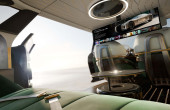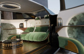 Στο εσωτερικό, η παραδοσιακή καμπίνα δίνει τη θέση της σε ένα πολυτελές σαλόνι. Δεν υπάρχουν συμβατικά καθίσματα, αλλά έπιπλα: Ένας καναπές αποτελεί το κέντρο της εμπειρίας, πλαισιωμένος από δύο πτυσσόμενα καθίσματα μπροστά.