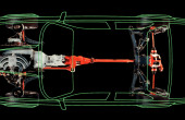 Το εμπρός διαφορικό κινούσε απευθείας το αριστερό ημιαξόνιο, ενώ χρησιμοποιούσε άξονα μετάδοσης που περνούσε μέσα από το κάρτερ για να κινήσει το δεξί ημιαξόνιο. Για να μην τραβάει το τιμόνι κατά την επιτάχυνση, προς τη μια ή την άλλη μεριά, το φαινόμενο torque steer δηλαδή, τα δύο ημιαξόνια ήταν ισομήκη.