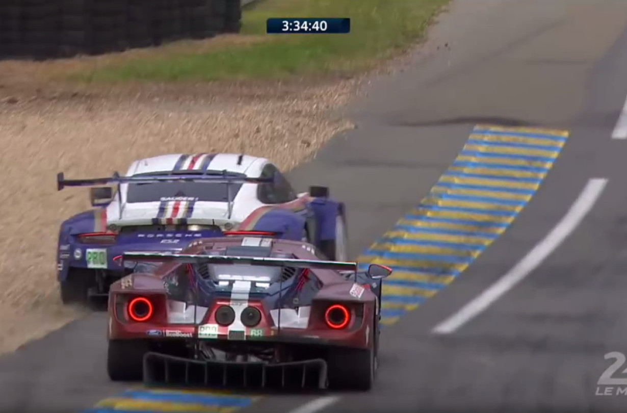 Στην κατηγορία GTE Pro είχαμε μια σπουδαία μάχη ανάμεσα στους οδηγούς της Porsche GT Team και της Ford Chip Ganassi. Δείτε τους να μονομαχούν στο χιλιοστό σαν καρτ μετά από 20 ώρες αγώνα.