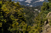 Από τη μονή προς τον Ελικώνα, το παλιό Ζερίκι, το τοπίο αλλάζει προοδευτικά. Οι στροφές γίνονται πιο πυκνές, οι πλαγιές ανοίγουν και τα πρώτα μεγάλα κομμάτια ελατοδάσους εμφανίζονται όσο ανεβαίνεις.