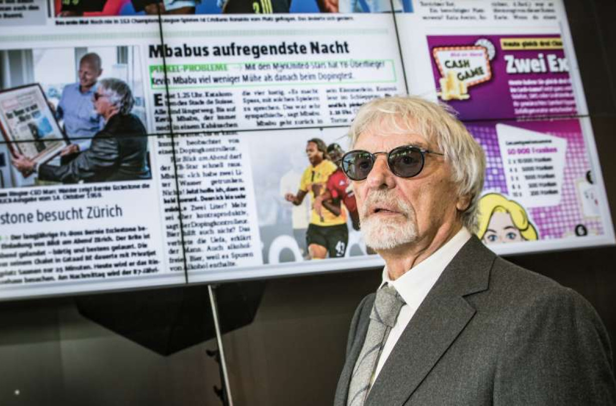 Ο Ecclestone βρέθηκε εκεί μετά από πρόσκληση της εφημερίδας BLICK Zurich και έφτασε με ιδιωτικό τζετ από το σαλέ του στο Gstaad, συνοδευόμενος από τη σύζυγό του Fabiana