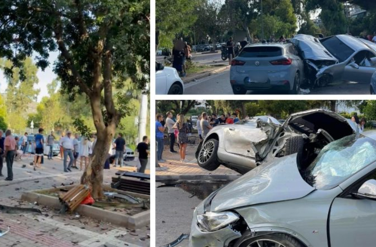 Απίστευτο τροχαίο στη Γλυφάδα: Αυτοκίνητο πέρασε μέσα από πάρκο πριν διαλύσει τρία άλλα αυτοκίνητα
