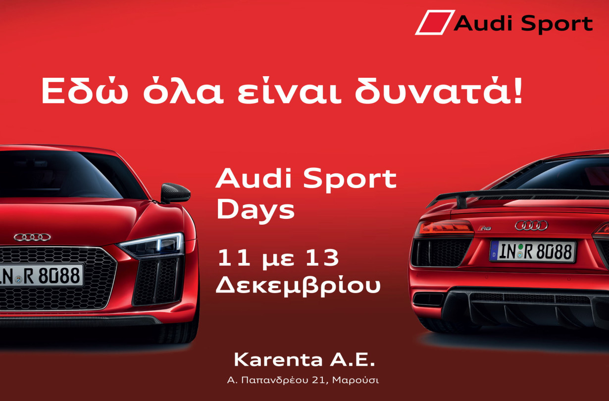Η Karenta Αμαρουσίου υποδέχεται το εντυπωσιακό R8 καθώς και τα μοντέλα S και RS της Audi το τριήμερο 11-13 Δεκεμβρίου 2015.