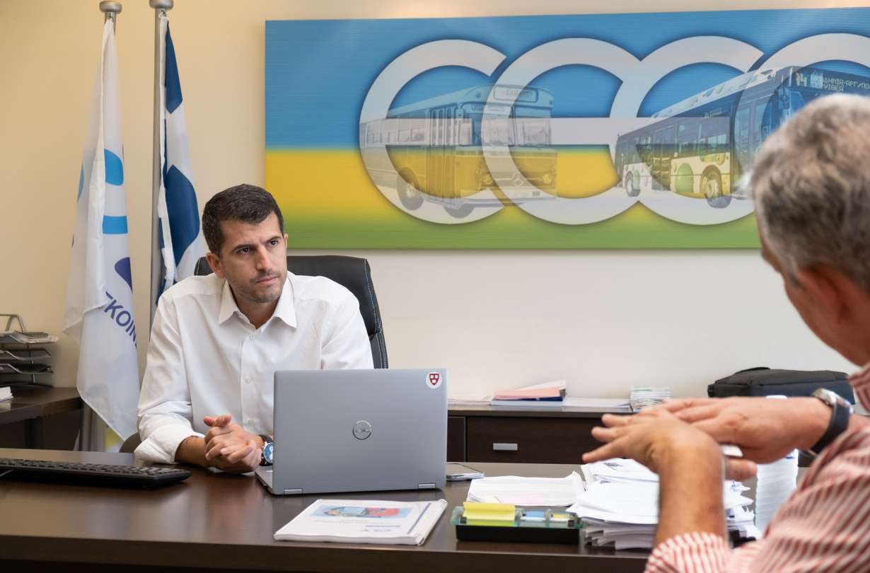Τώρα και µε την ευκαιρία της νέας εποχής στην κινητικότητα θέλουµε να µάθουµε πώς αυτή θα αποτυπωθεί στις δηµόσιες συγκοινωνίες. Οπότε µια συνάντηση για συζήτηση µαζί του ήταν περισσότερο από διαφωτιστική.