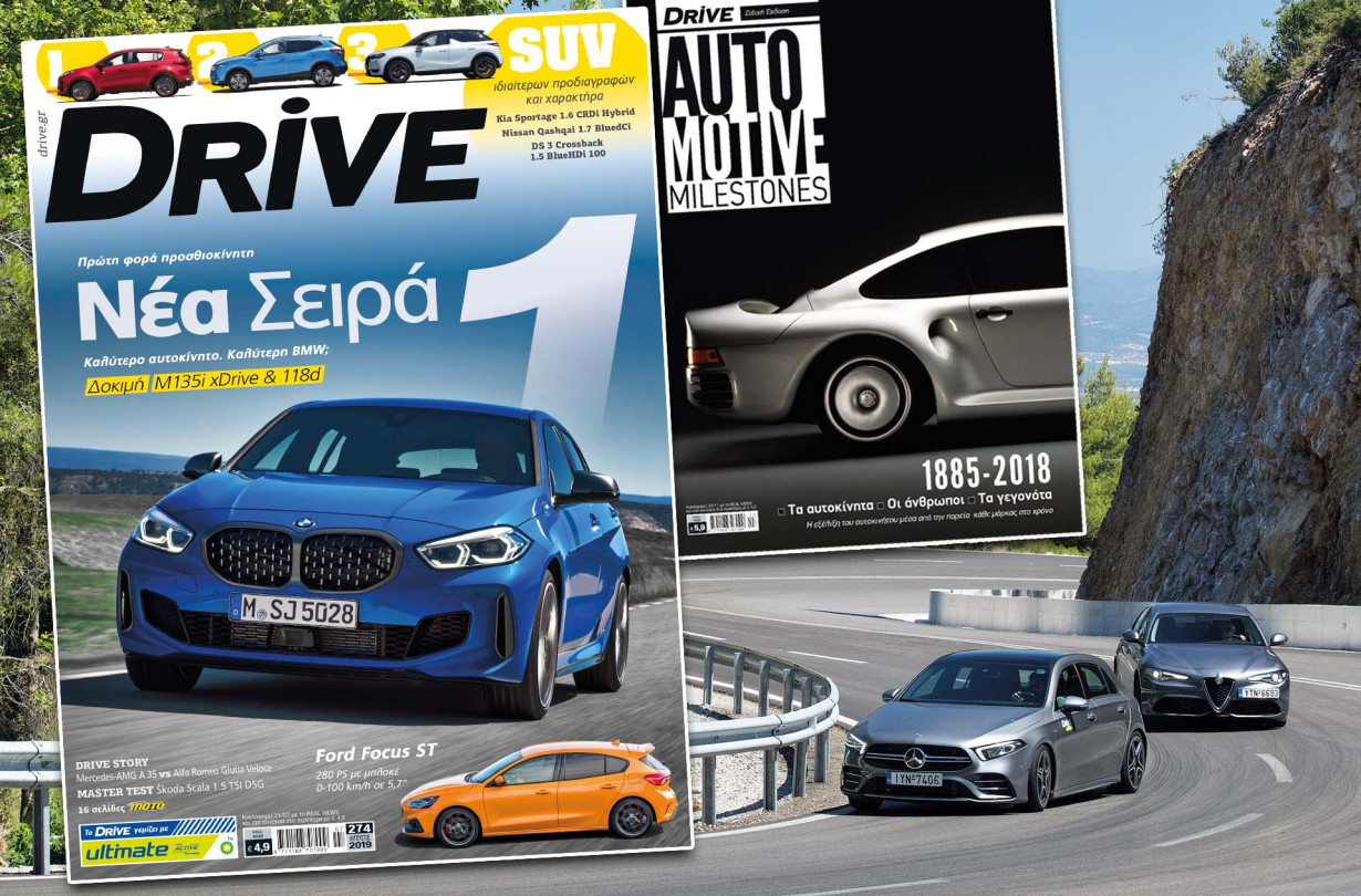 Τo DRIVE #274 κυκλοφορεί ξανά σήμερα. Θα το βρείτε στα περίπτερα, και μαζί τη συλλεκτική έκδοση Automotive Milestones. Απολαύστε 420 σελίδες Αυτοκίνητο.
