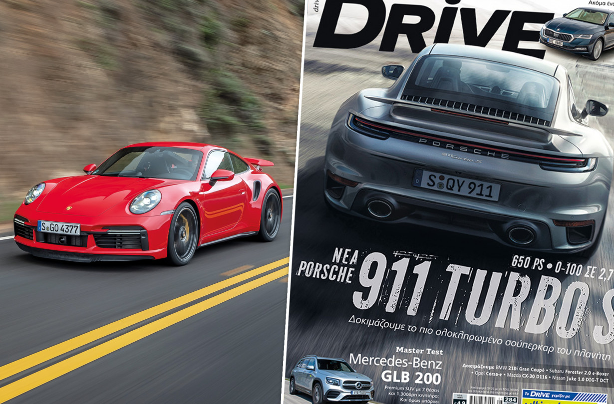 Σε αυτό το τεύχος, η αρωγή των Βρετανών συνεργατών μας αποδείχτηκε πολύτιμη ώστε να μπορέσουμε να φτιάξουμε αυτό το εντυπωσιακό εξώφυλλο. Με μια από τις πιο ψαρωτικές πίσω όψεις που διαθέτει στις τάξεις της η αυτοκίνηση, εκείνη της νέας Porsche 911 Turbo S που αποδίδει 650 PS και κάνει 0-100 km/h σε 2,7”. Δεν είναι λάθος, 2,7”…