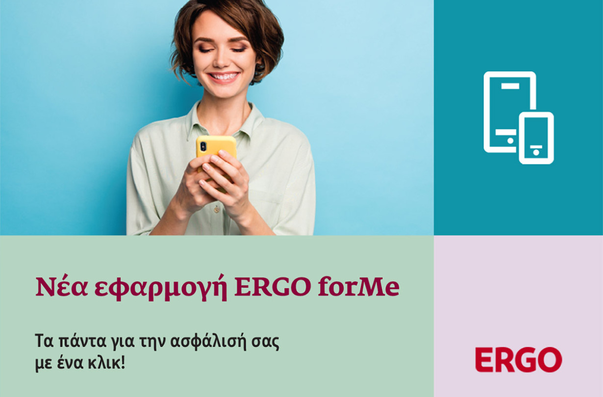Η ERGO Ασφαλιστική κάνει ένα ακόμη βήμα προς τον ψηφιακό μετασχηματισμό της, δημιουργώντας τη νέα εφαρμογή ERGO forMe η οποία απευθύνεται προς όλους τους ασφαλισμένους της, παρέχοντάς τους τη δυνατότητα να διαχειρίζονται τη σχέση τους με την Εταιρεία και την επικοινωνία με τον Ασφαλιστικό Διαμεσολαβητή τους, με τρόπο απλό, εύκολο και γρήγορο, οποιαδήποτε στιγμή, όπου κι αν βρίσκονται.