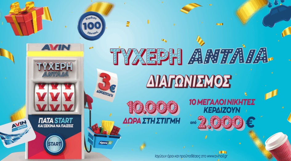 Από 10 Δεκεμβρίου έως 8 Ιανουαρίου, με κάθε ανεφοδιασμό ≥20 lt καυσίμων Action από τα πρατήρια AVIN που συμμετέχουν στην ενέργεια και με τη χρήση του Προγράμματος AVIN Κερδίζω, οι πελάτες κερδίζουν spin στην «Τυχερή Αντλία».