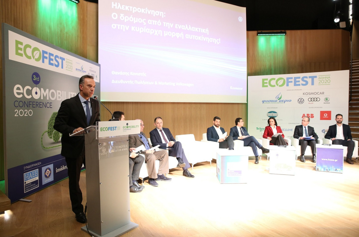 Την τελευταία ημέρα του Eco-Fest 2020, διεξάχθηκε για τρίτη συνεχόμενη χρονιά το “Eco-Mobility Conference”, το μεγάλο ετήσιο συνέδριο για την ηλεκτροκίνηση και τα εναλλακτικά καύσιμα, με ομιλητές από την κεντρική πολιτική σκηνή, την τοπική αυτοδιοίκηση, τον ιδιωτικό τομέα και τον ακαδημαϊκό χώρο. Σε συμμετοχή του στο εναρκτήριο πάνελ του συνεδρίου, ο κ. Ανδρέας Χαλμπές, Διευθυντής Πωλήσεων και Marketing της Kosmocar-Škoda, αναφέρθηκε στην γκάμα της Škoda που πλέον διαθέτει τόσο ηλεκτρικά όσο και plug-in hybrid μοντέλα και η οποία μέσα στο 2020 θα εμπλουτιστεί περαιτέρω. Σε πάνελ του συνεδρίου αφιερωμένο στις υποδομές ηλεκτροκίνησης, ο κ. Νίκος Μαρτίνος, group PR manager της Kosmocar, αναφέρθηκε μεταξύ άλλων στην αναγκαιότητα επιτάχυνσης παρουσίασης κινήτρων και της ανάπτυξης υποδομών στην Ελλάδα, που θα διαδραματίσουν καταλυτικό ρόλο στην ευρύτερη και ταχεία εφαρμογή της ηλεκτροκίνησης.