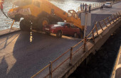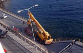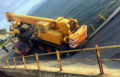 Η γέφυρα, η οποία «έκατσε» από άγνωστο, μέχρι στιγμής, λόγο, παρέσυρε έναν γερανό και ένα ΙΧ αυτοκίνητο, προκαλώντας στα 2 οχήματα ζημιές, με τους οδηγούς τους να είναι καλά στην υγεία τους, ενώ από καθαρή τύχη δεν υπήρξαν τραυματισμοί διερχόμενων οδηγών.